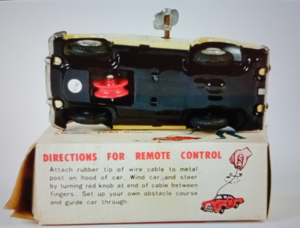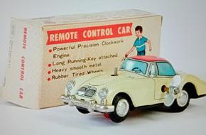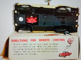 "Further investigation has shown that they were sold by a NY toy company called Shackman, and they were indeed an early remote control car controlled by a long spring/running key. See attached photos of a similar but same principle version of the car to the one I bought that was sold at auction a while back. -- Tim