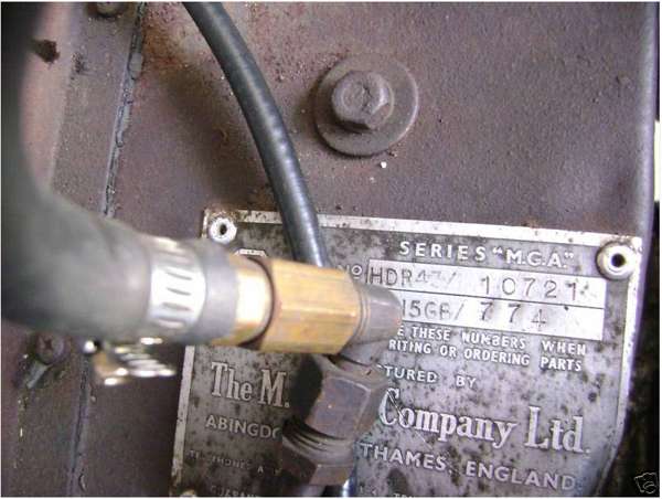 Notice on the two plates shown at top of page, the word in the lower left corner may be "GUARANTEE" or "WARRANTY". With a public pole I discovered the highest number known (so far) to say "Guarantee" is car no. 10979. Number plates from the MG TF model said "Guarantee" and ended with car no. 10100. Number plates for MGA start (continue) at car no. 10101. It appears that lettering on the plate was first changed from "TF" to "MGA" for the first production batch (perhaps 1000 plates), then changed from "Guarantee" to "Warranty" for subsequent production. It may also be that the different plates were mixed and used in some random order near the change over point, so some cars between 10500 and 11500 (approximately) may say either "Guarantee" or "Warranty".