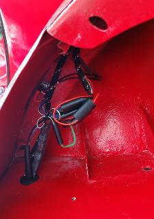 Below, connections to front corner lamps, just inside of grill opening.