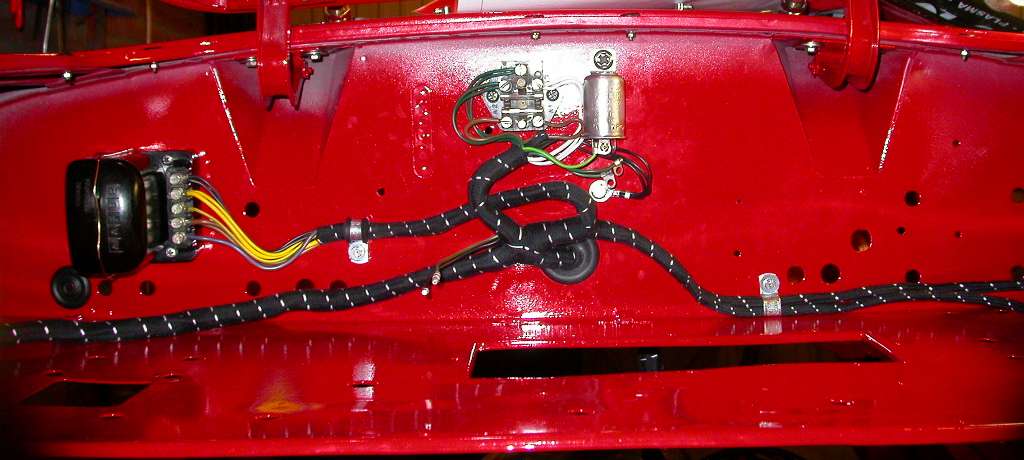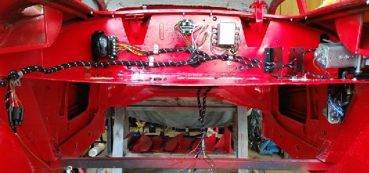 The pictures below show the wiring wiring harness installed on the bulkhead behind the heater box. Find more about the harness installation in article ET-100A - Harness Installation.