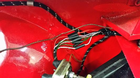 Above, connections between main and side harnesses (near starter switch).