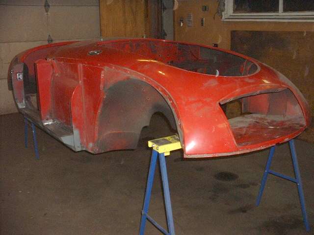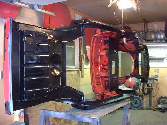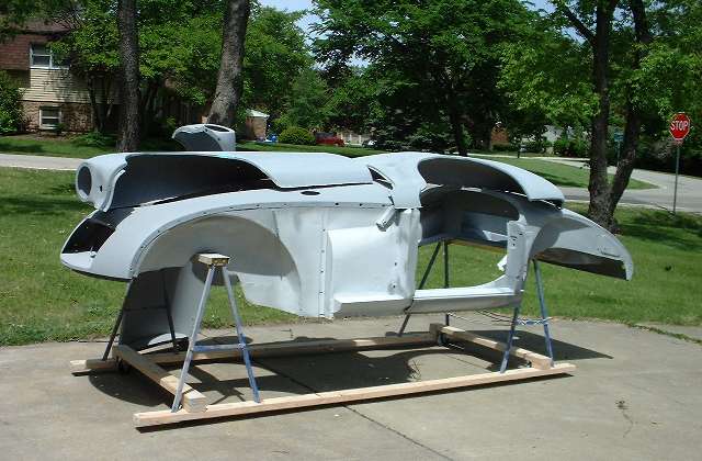 For underbody painting I put a narrow sheet of plywood on the saw horses and turned the body on its side for easy access while painting inside and underneath.