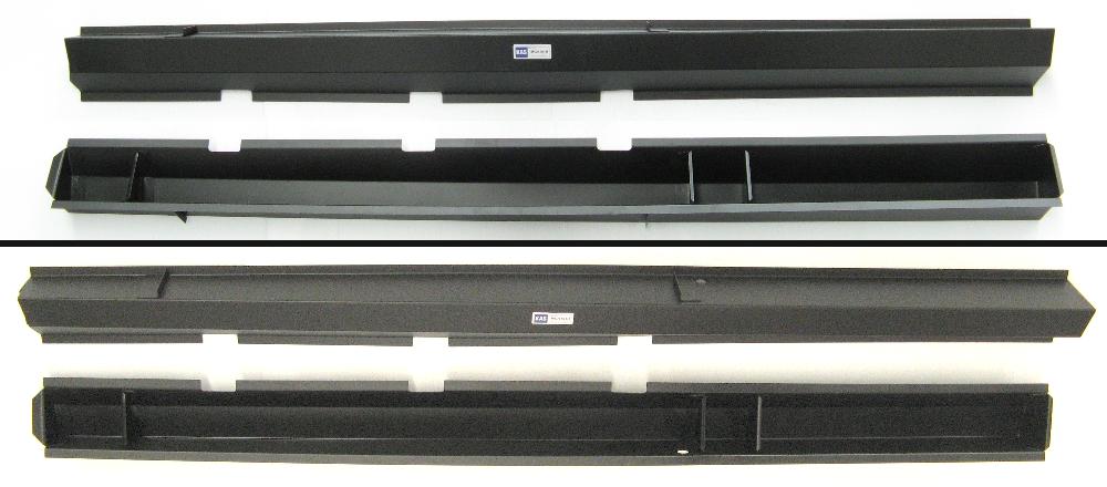 "Feb.26 I ordered L & R Inner sills. I received the parts Mar 15 via air mail from Down Under. The top side of sills is 4 inches wide at the front end and 2 inches at the rear end, has all the baffles and cut-outs etc. They look like excellent copies of the originals. Parts are 18ga with black primer. Greg Kilmartin is very helpful, quick response guy. He notified me at my first inquiry, the exchange rate is 79 Au cents to 1 US buck, so a nice 'discount' for all".