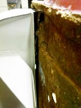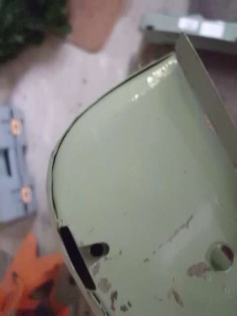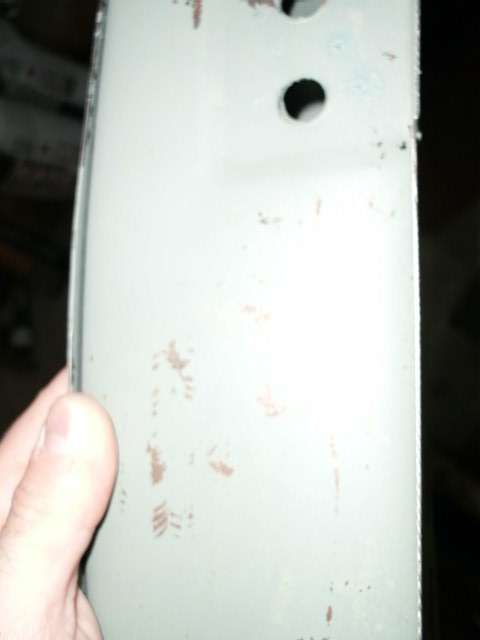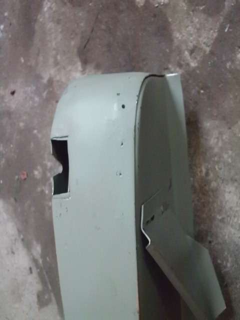 This assembly is missing a vertical flange at the top end of the outer cover (although it may not have been original issue). The flanges at the breaks in the vicinity of the striker plate depression appear to be formed in the proper plane. The outer cover plate seems to be securely welded, but has some burn through or blow holes the should be welded shut. The outboard closure panel appears to be crowned where it should be flat across. Not sure from these photos if it has the right taper angle on top.