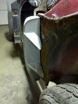 Next flaw is breaks in the forward flange apparently cut to facilitate forming of the shallow pocket for the striker plate. These cuts may be required for low volume hand forming of the parts (from this supplier), but the cuts should be welded up and ground smooth after fabrication. In this case the extra work is again left up to the installer.
