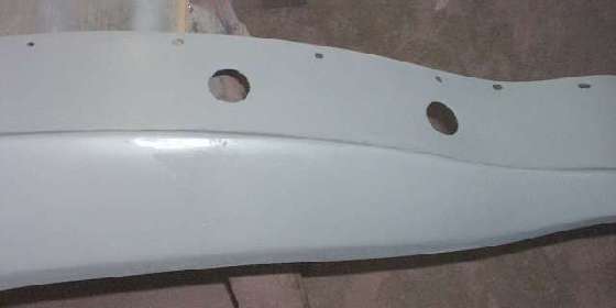 As I recall, the five larger holes were in the panel as received, while the smaller mounting holes needed to be drilled to suit (very easy to do). The surface gel-coat on the front side was solid and smooth, just scuff sand it and spray primer before painting. The rear side was random mat fiberglass, sealed but rough texture. I applied a few coats of primer and sanded it some to be smooth enough to wash and not trap dirt. You can find more pictures of the repair process in restoration article RT-626.