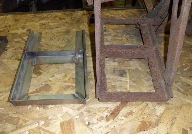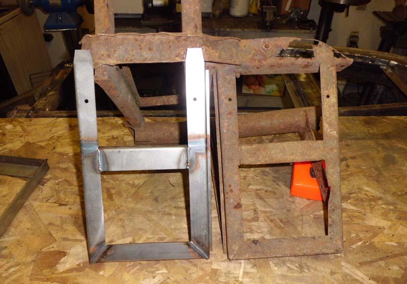 The trays I ordered from C&C are damn near exact duplicates of the originals. The only difference I could find was they were missing the "joggles" where they weld to the rear floorboard rails, which I added in a few seconds using a seaming pliers. Here is one of the C&C trays next to an original assembly".