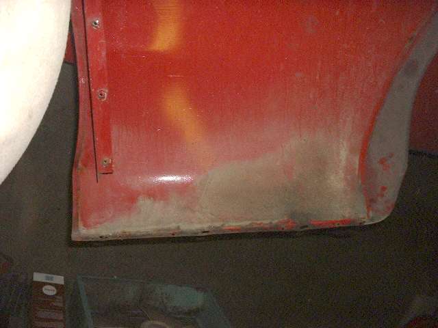 Views of the right front wing. This one is in much better condition, not touched by "the other guy" when last painted 10 years ago. Just paint chips underneath. This will be fairly easy to clean and repaint (again).