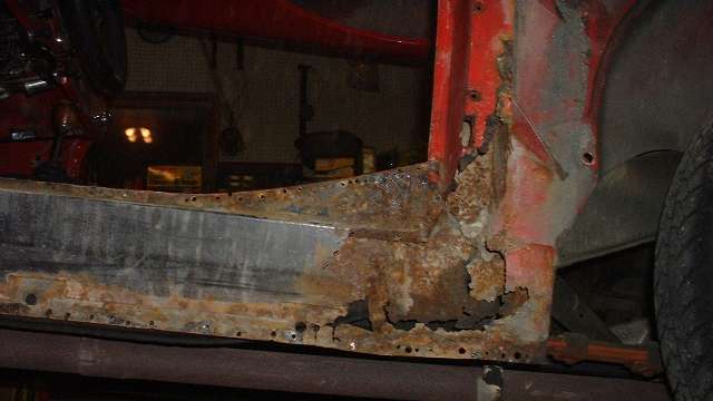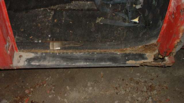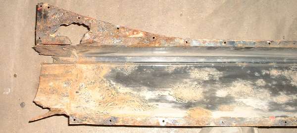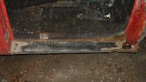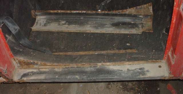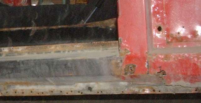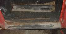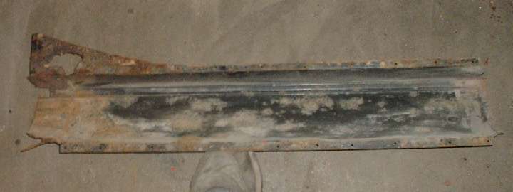 View inside of the right side rocker panel. This one is in somewhat better condition, but I may still replace it, if I can find new panels the right height.