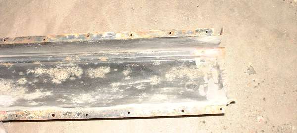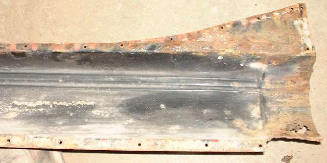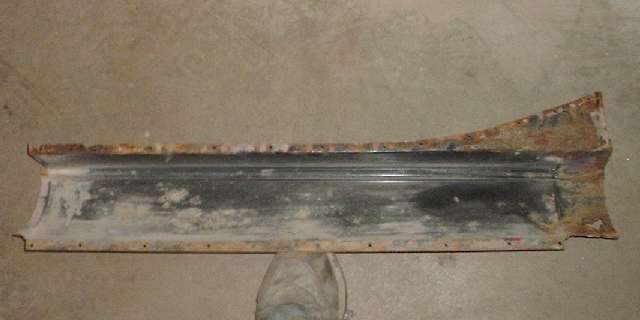 View inside of the left side rocker panel. I can tell you, it is a lot easier drilling out 30 year old pop rivets than breaking spot welds. The black is not a cheap thin factory primer. It is Pettit PolyPoxy over a caustic etching primer. Just that it has been in service on the road for 21 years, all year round, in the Chicago area. This rust is a little worse than I thought before disassembly. It could be repairable, but I may start with a new one anyway. This is the panel that was too tall at the shoulder. The solution would be to flatten the bottom flange and re-form it with the bend a little higher, and then cut off the excess. I might still have to do that with a new one if I can't find a new one the right height.