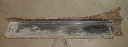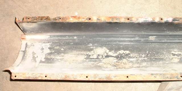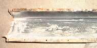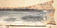 Finally, what I have been so anxious to see, views of the inner sill on the left side. There is a little rot underneath ahead of the A pillar, but the pillar is entirely in tact including all of the bottom flanges being solid. At the back about 8-inches of the outer shell is gone, except by some miracle enough of the tail end is still there to provide dimensional reference for rebuilding. A lot of the center section of the sill is in surprisingly good condition. I had a brief moment thinking maybe some of it could be saved easier than replacing all, but the moment passed quickly. I know the entire inside of the lower box section has serious surface rust, and if it isn't replaced this whole job could come back to haunt me in another 10 or 15 years. So I intend to replace all of the lower box sheet metal and do a bang up job of rust proofing the inside. This stuff is all flat stock with simple bends and flanges, so it should be easy enough to fabricate new parts from flat sheet stock.