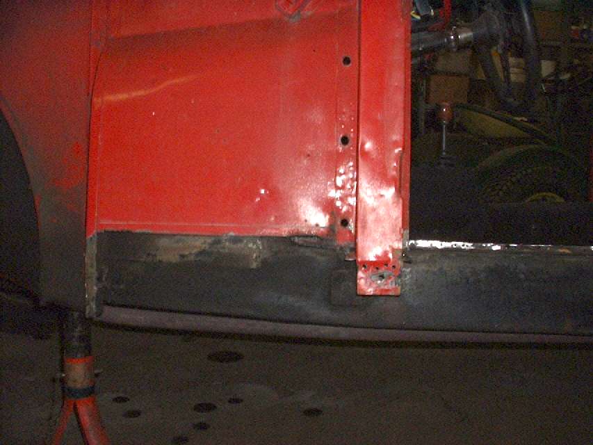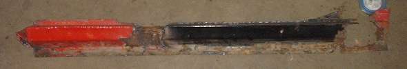 The plasma cutter had a good workout here. In retrospect, it would have been quicker to cut away the outer box panel first, then the vertical panel, like I did on the other side. Remember the old adage, "reassembly is the reverse of disassembly"? Well it works the other way around too. Disassembly is the reverse of assembly. The farther you get away from the "reverse of assembly", the harder it is to disassemble. I was just a little bull headed in this case because I wanted to preserve the removed sill assembly for future reference and modeling.