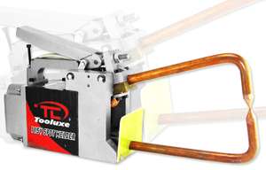 Caution: It is possible to cause some warp in the panels when placing a number of welds in a small area. The weld spot will be bright hot and soft at the instant of highest welding heat. If the weight of the welder is supported by the panel, or the weight of the panel is supported by the welder, the soft weld spot can be pushed slightly out of plane from the force. Several welds made in the same area with the force in the same direction can result in a slightly bowed panel. In my case this was easily fixed by placing the part across a bridge of two boards with a gap between, and tapping gently with a heavy hammer. Having seen this problem once, I was more careful the second time to support the weight of the panel during welding, in which case warpage was virtually nil. (25 Jan 08)