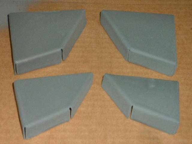Photos below show the finished end plate. On the first part I guessed at the bend radius and made the bends a little inboard from the nominal bend line. I hammer formed the short center flange first in a vice, then bent the two adjacent longer flanges using the small bending brake. That was followed by some fiddling with hammer to "fine tune" the position of the flanges for a better fit inside the box. For the last flange being bent in the opposite direction, I clamped the part in a vice using a thick spacer on the side that was already flanged, then hammer formed the last flange (in about 30 seconds). Notice the final outboard flange is intentionally out of plane by one thickness of sheet metal. This is where it sits on top of another overlapping body flange at the front of the sill.