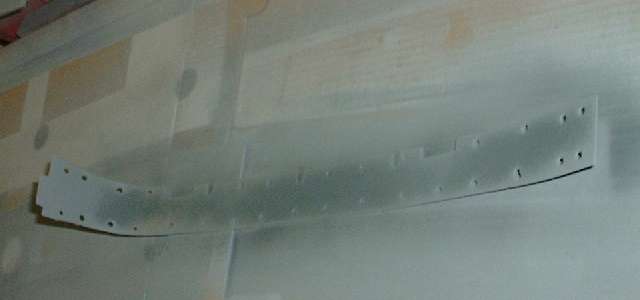 Notice also in the same picture two small notches in the front edge of the strip. These were cut in line with the small slots in the front plate where the door buffer screws will be installed. These notches can then be used as reference for laying out and cutting the larger notches for the door buffer, and also to reference the location of three more small clearance notches for the screws for the shut face plate (and front edge of the rear wing).