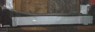 There were a couple of tricks to fitting the new rocker panels. Click on picture at right for larger view. Notice the flanges do not lie in a common plane as they should for attachment to the mating flat surface. This has an easy fix. Clamp the flange in a vice and push on the body of the panel until the opposing flange is in the same plane. Ditto for the other flange. The next issue was the mouth of the part (distance between flanges) was a little too wide open. Solution there is to push the flanges together hard with two hands to reduce the height of the part to match the height of the body sill. That's it, maybe five minutes for each part to make them fit flat for welding.