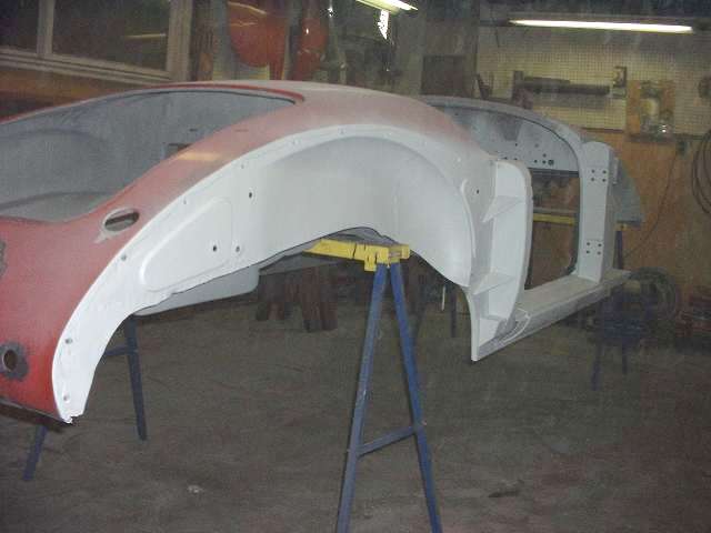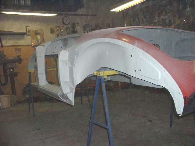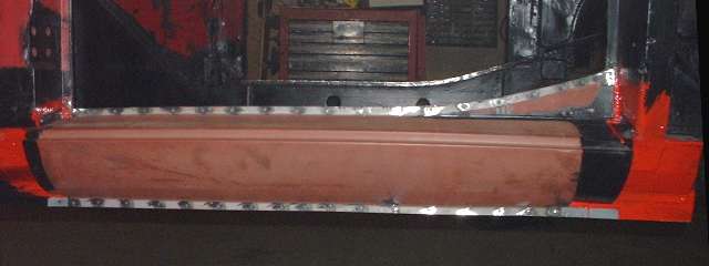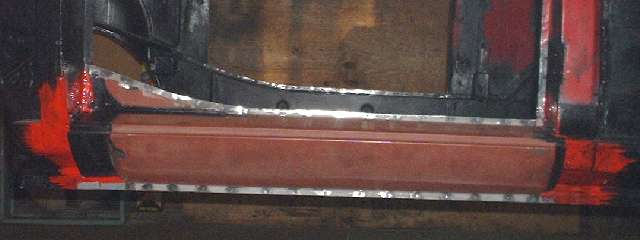 As to that "ulterior motive" for painting the rocker panels red inside, maybe just a touch of superstition or personal preference. These were the only body surfaces left black with the prior restoration when the red paint was applied after the rocker panels were installed. Not this time. I will leave it for the next generation, and whomever might be the next person to disassemble or repair this body, to figure out how it was welded together AND painted inside. Chuckle. (23 Mar 08)