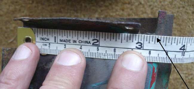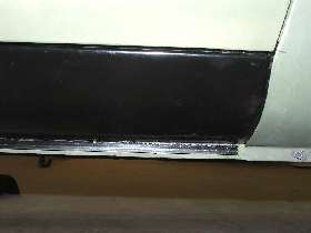 These photos and notes were supplied by Gordon Fletcher, near Denver, Colorado). The first picture is an original issue rocker panel removed from his car, as it has the original paint (Tyrolite) and the spot welds had not been tampered. Gap at right side of front edge is about 3/8”, and overall width is just shy of 3-3/4"