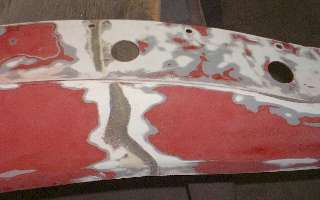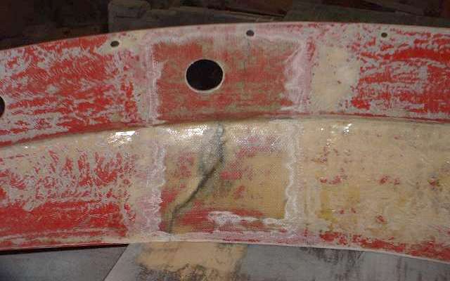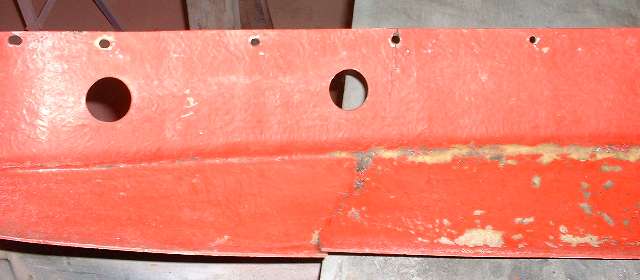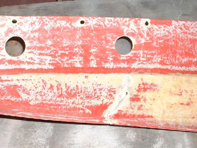 This piece has been in service for 21 years, 214,000 miles, and has seen more than few "road incidents", lots of paint chips and a few small cracks. Several years ago during a short off road excursion (only partly planned) a grassy road shoulder put a hurt on the lower edge creating a long vertical crack from bottom to center and from top to center (almost), leaving a short section of solid at the center rib. I have considerable appreciation for the strength and durability of this piece, and it looks to me to be as easy to repair as to fit a new panel, so here goes.