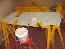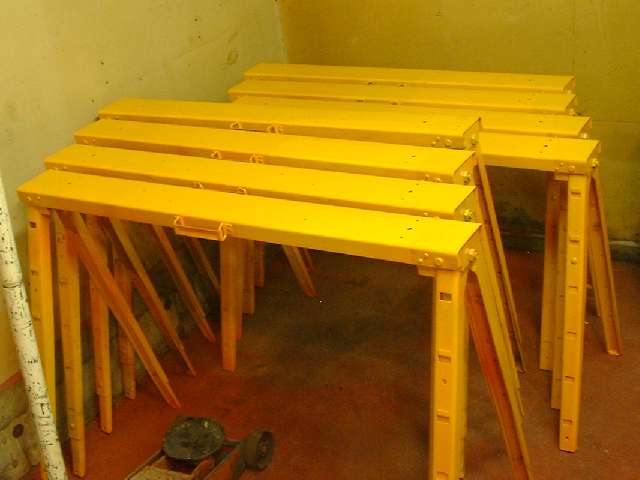 Then I did a little dance on the driveway spraying some yellow paint on the borrowed saw horses before I send them home (sticky yellow mist). I suppose it wasn't really necessary, but they were new when I borrowed them, so I thought it would be nice to return them at least looking clean.