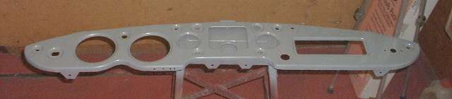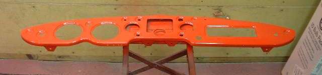 Next I disassembled the dash and power sanded the flat face only, removing red-gray-red gray from two prior paintings, and some more recent deep scratches (more dust). I didn't bother trying to remove paint in the depressions, as that part was smooth enough to take another repaint. This was primed late in the day. If I had my schedule right this could also have been red by day's end, but I just forgot about it until later. No big rush for that anyway as I want to install carpet before dash.