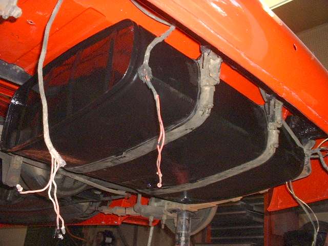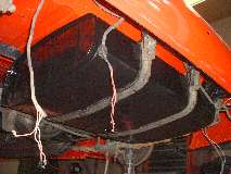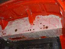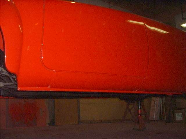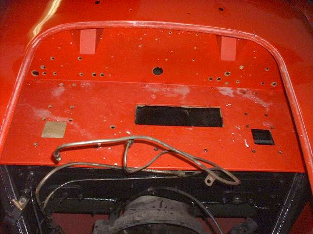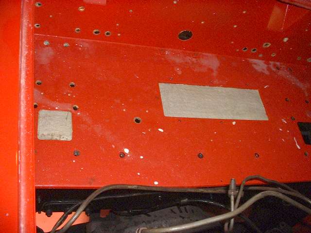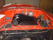 Too many distractions today. I re-sprayed the heater and some of the loose red bits, painted over a bunch of bolts (mostly fender bolts), installed the rearmost splash guards to anchor the rear fender bottom edges. Looks like I will have to skip the carpet and interior panels until next week if I want to drive it Saturday morning. .... (25 June 08)
