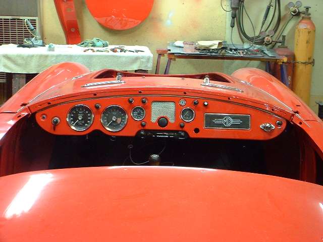 A couple of days here I count as play time, getting to install the main wiring harness with grommets, screen wiper drive, wiper motor, dipper switch and bracket, master cylinder and pipes, turn signal relay, flasher unit, fuse box, heater, screen washer bottle bracket, fuel pipe with P-clips. No control box this time, being omitted as unnecessary since last year's installation of an alternator. Next was the demister ducts and bright finishers, dash panel with all included fixtures and wiring and under dash braces, rear bumper with license plate bracket and lamp, all lighting fixtures, fuel filler parts, and cowl vents.