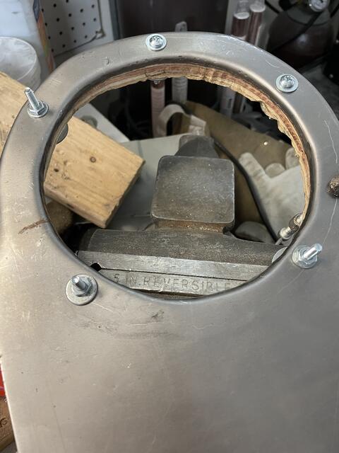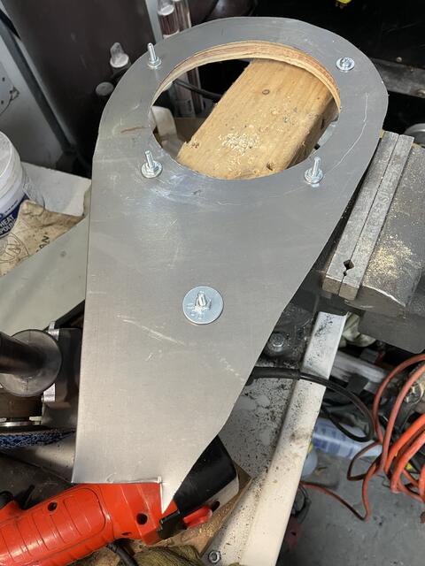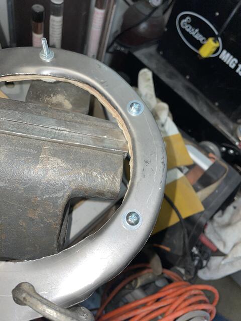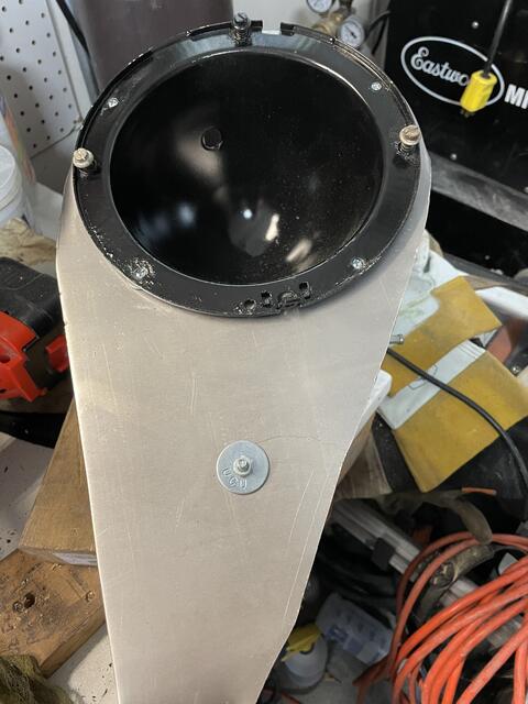 After many, many ball peen hammer blows I think it came out pretty good and the light bucket fits well.