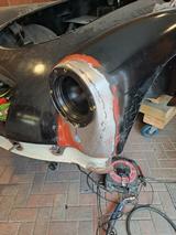 Something also just didn't look quite right, when I ran a large straight edge across the headlamp area (wing to wing) the left hand ring was pushed back rearward. This was also confirmed as I couldn't get a new headlamp bowl to fit flush.