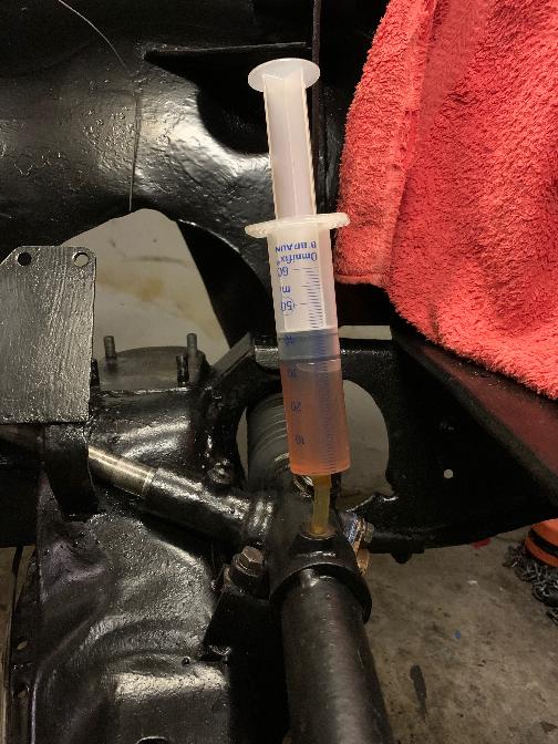 This question has been getting kicked around a lot, so here are some suggestions. The original prescription was a small grease gun that was original issue as an optional factory tool for MGA. It was intended for grease, but can also be used for oil to pump into the Zerk fittings on the steering rack. The rack needs six fluid ounces of EP80W90 gear oil (same stuff you put in the differential). So you can fill the little grease gun, and pump the whole load into the steering rack, reaching in behind the radiator. For MGA Twin Cam and "Deluxe" cars the Zerk fittings will be on the bottom.