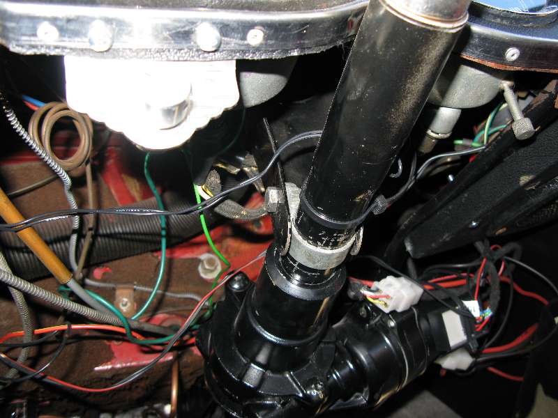 The mechanical unit is located in the steering column aft of the firewall. It will create offsetting torque between the steering shaft and the outer housing. Output torque at the U-joint coupling will obviously be greater than input torque at the steering wheel applied by the driver. The difference between input and output torque will be a reaction torque on the assembly outer housing. The two original light weight mounting brackets were not designed to accommodate this reciprocating torque on the column outer shell. I have yet to see how this new housing torque is coupled to the car body.