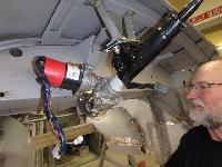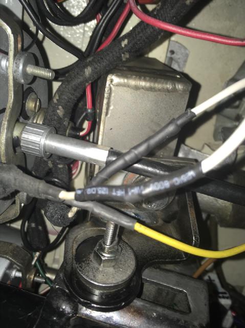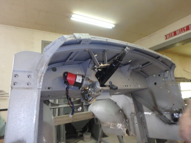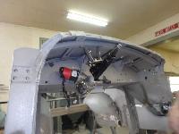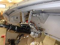 The upper part of the column bolts to the lower part of the stainless frame, using the original Toyota mounts. The ECU is also mounted to this frame, sitting behind the tacho and speedo. The Toyota column has the bits and cams for indicator stalks, light switches etc. removed, and the sliding piece from a MGA adjustable column welded and pinned to replace the Toyota end. The EPS motor sits in the space between the hood release handle and the tacho / speedo cables.