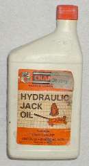 Hydraulic jack oil is ISO 32 hydraulic oil. ISO 32 is equivelant to SAE 10W. I have been using it for more than 20 years with good results. If you want to uprate to stiffer shocks you might do okay with ISO 68-70 hydraulic oil (SAE 20W) on consistently rough roads. Do NOT install oil thicker that ISO 100 or SAE 30W, as that can lead to broken internal parts of the shock absorber (not to mention extremely harsh ride). Do NOT install oil thinner than ISO 32 (SAE 10W), as that will not have sufficient wear resistance at high temperature. Hydraulic oil is recommended over engine oil due to anti-foaming ingredients, high temperature tolerance and non-detergent.
