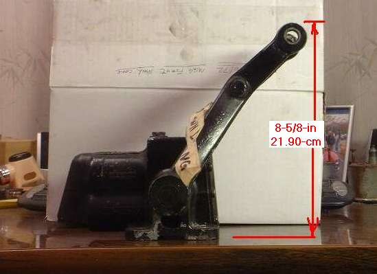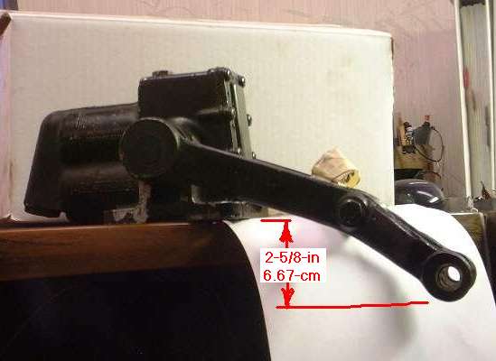 Someone received some MGA front shock absorbers that had been disassembled, so the question was how to position the pistons relative to the arm when reassembling it. In schematic it looks approximately like the diagram above, but in fact the arm may be slightly higher when the pistons are at mid stroke. To get it right I have placed an MGA front shock absorber on a table to measure full travel of the arm.