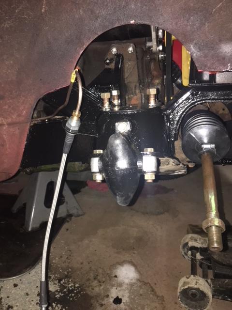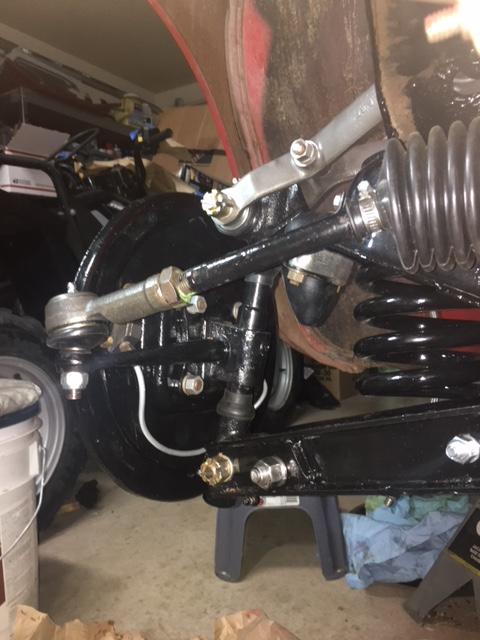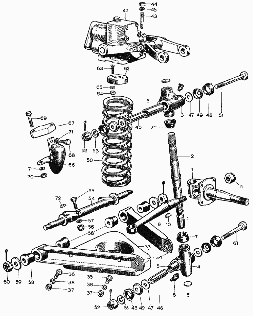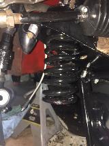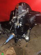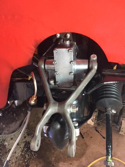 When you are sure the swivel pin is straight and everything is in place you can connect the anti-sway-bar link and tighten all of the bolts. If you use the MGB GT V8 bushings, then leave the nuts on the ends of the A-arm Pivot loose until later. Connect the steering tie rod ends securely. Install brake backing plates or dust shield as fitted. Install hubs with wheel bearings and seals and grease covers. Assemble brake parts, rotors, calipers, drums etc. Connect hydraulic pipes and hoses, and adjust and bleed the brakes. Install road wheels, remove jack stands and lower the car to ground.