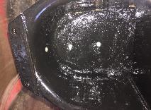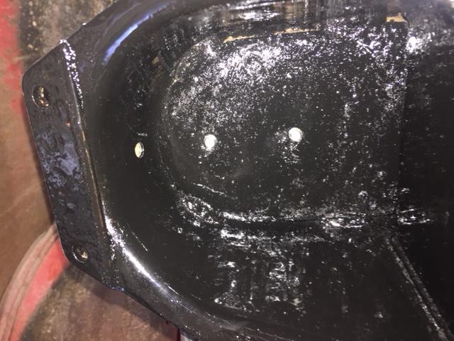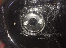 The trunnion seal support has a flanged cup shape. The flat faces the nut or bolt head while the flanged side faces the swivel link. Put the trunnion seal on the support, put the hardened steel thrust washer inside the seal and support, and install the lip of the seal over the end of the swivel link. A small orbital motion can help to make the seal lip jump into position on the swivel link. Repeat for two seals on each swivel link.