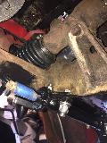Insert the coil spring and jack up the spring pan. Loosen the pinch bolt located half way out on the shock absorber lever arm so you may be able to spread the arms slightly when installing the upper trunnion.