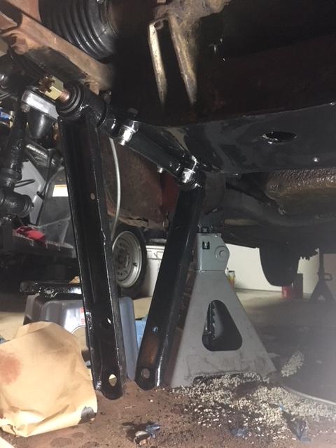 Swivel pins and swivel links have left hand threads for left side parts and right hand threads for right side parts. Top swivel links have the bump stops. Steering arms point forward and swivel pins tilt inward at top. Be sure the threads run free for full length of engagement. Grease threads a bit before assembly.