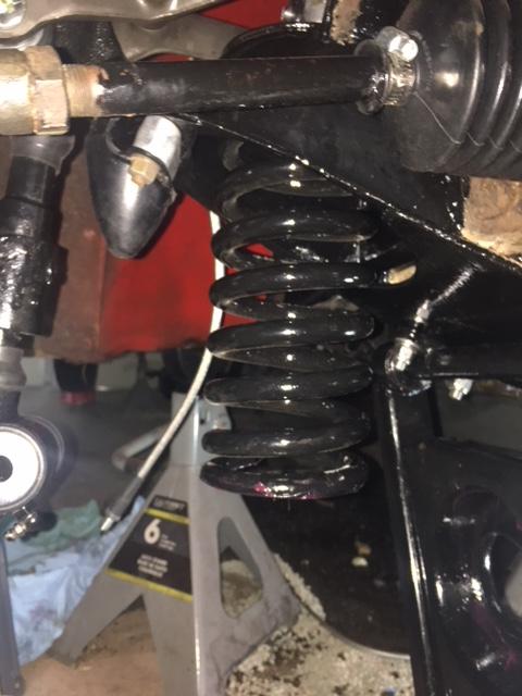 Bounce the car a little to settle the suspension to normal ride height before tightening the nuts on the A-arm inner pivots. This step is to centralize the bushings on the A-arm pivot so they will encounter equal twist with both up and down travel of suspension, not over stressing the rubber. Check and/or adjust front end alignment as necessary. A test drive is a good idea to be sure it all works right before you drive too far.
