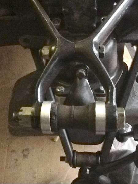 Mark Hester sent this picture of the MGA shock arms with shaft spacers and rubber bushings from the MGB top trunnion.