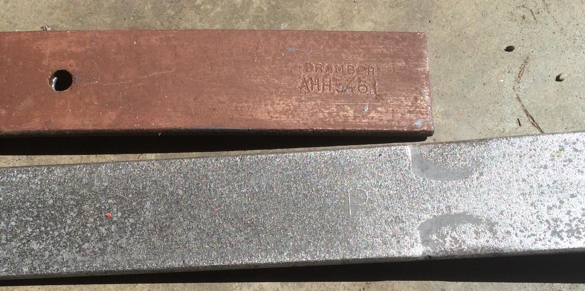 Original leaf springs were stamped with the manufacturer's name and the BMC part number. Thanks to Jim Stout and Thomas Storey for these pictures.