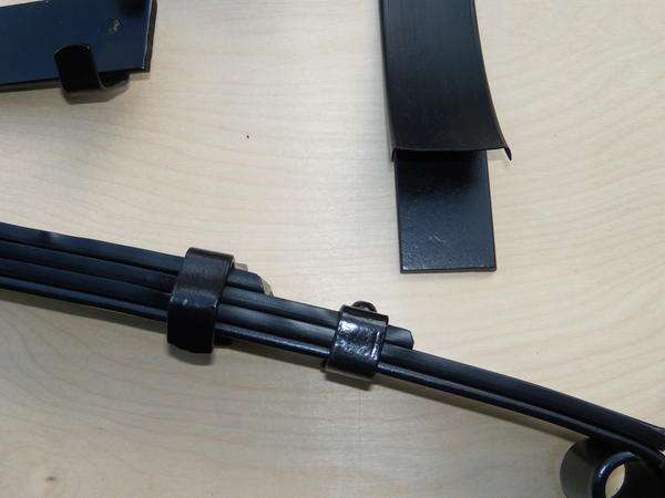 There is an exception to this rule. If you install inter leaf anti-friction liners, then painting the mating surfaces is okay, as the liners slip and slide okay on the paint. But you should decide first where you will install the liners and where not. Each liner is about 0.040-inch thick, so installing five liners can increase thickness of the spring up to 1/4-inch (including paint coats). This might be a problem for the center bolt or for the wrap-around straps. Consider installing the liners for only the three longest joints which would add only 1/8-inch to the assembly stack height. Once you decide where you intend to install liners, then you can paint those surfaces prior to assembly. The unpainted surfaces that will rub together can be coated with graphite or molybdenum-disulfide dry film lubricant before assembly.
