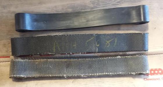 New rebound straps purchased October 2014, installed May 3, 2016. Photo here shows 30-year old replacement parts in relatively good serviceable condition, and the new replacement parts.