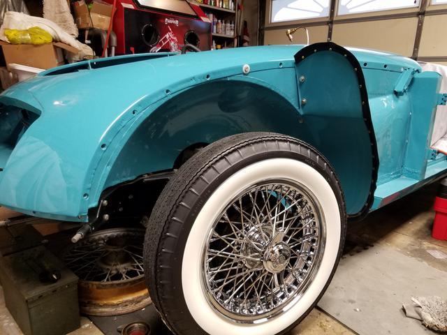 On good advice, I installed a set of Nexen SB802 tires 165-80-15 on my MGA, shown here on my 4-1/2 inch wide wheels. Look good, feel good to drive on with good grip and handling response. Time for the life test.