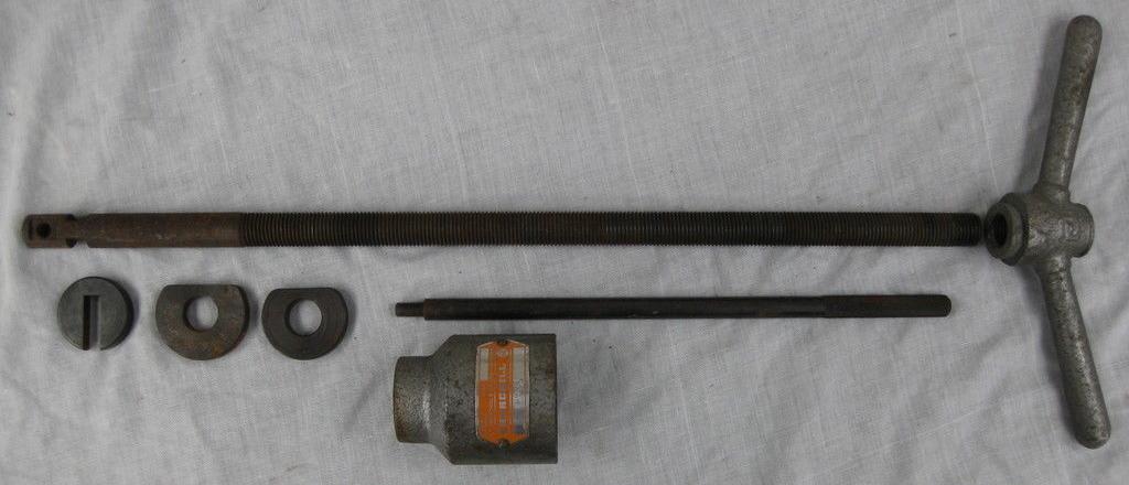This equipment consists of a basic tool 18G124A and various adapters (supplied separately) for different types of engines and for this model shown at right. Liners can be removed and replaced without the damage invariably associated with the use of improvised drifts. Full instructions for using the equipment will be supplied with each basic tool.