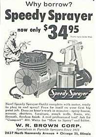 An ad from the past. This ad was run in Popular Science magazine in June 1962. I bought the very same model in late 1970 for $39.95. I still have it, and I still use it. It is a nifty little tool for small jobs. A little slow, but good for inflating sports balls and tires up to 40 psi. Also good for small paint spraying jobs where appearance may not be absolutely critical.
