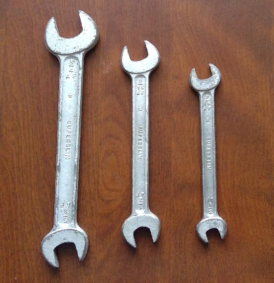 Here we have the TW Superslim forged steel "flat" wrenches. These would be significantly more expensive than the flat stamped steel King Dick wrenches, so it is very unlikely that the Superslim wrenches would even have been specified as standard for the MGA tool kit. But there are a few reports of these wrenches being found in tool kits of MGA that having been "in the family" since being purchased new, implying that these parts may have been packed in the car from the factory.