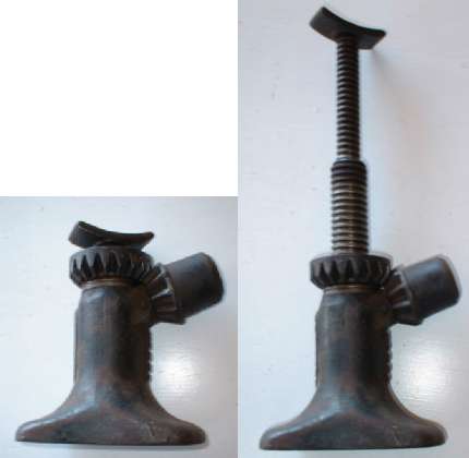 Picture above left is a Shelley LJ23 screw jack as supplied with some early MGA 1500 cars. The "59" below the model number is presumed to be the casting year, so this would not be an original MGA jack. It is similar to the King Dick jack, but notice the flat sided base. (Thanks to Mike Parker for this picture).