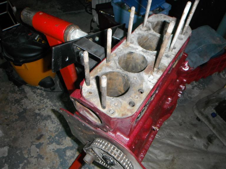 "With engine work in my future, yesterday’s project was to build a side mount bracket for the engine stand. Hap recommends the use of something like this, because most standard engine stands attachments prevent installation of the crankshaft. Since I don’t weld, some slight ingenuity and a few bolts were required.