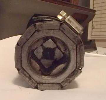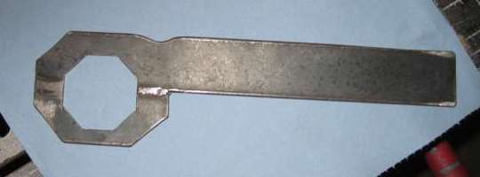 "It is not so difficult to fabricate an octagonal spanner from 1/8 mild steel, using hacksaw, drill and file. About an hour's work. Make the handle about 12" long and tighten it with a 1 lb hammer. If you are careful you can get an exact fit.